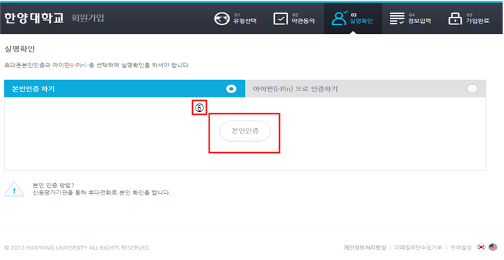 6. 실명확인 > “본인인증” 클릭