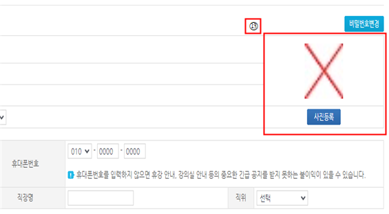 13. 원격평생교육원 학사정보시스템 다시 “로그인” > My(학생)홈 > 개인정보조회 클릭 > 우측 “사진등록”