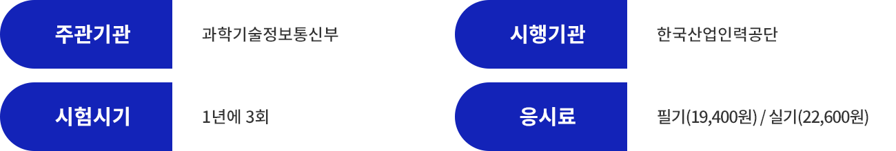 | 검정방법 | 객관식 4지 택일형 (과목당 20문항/30분) | 필답형(2시간 30분/100점) |