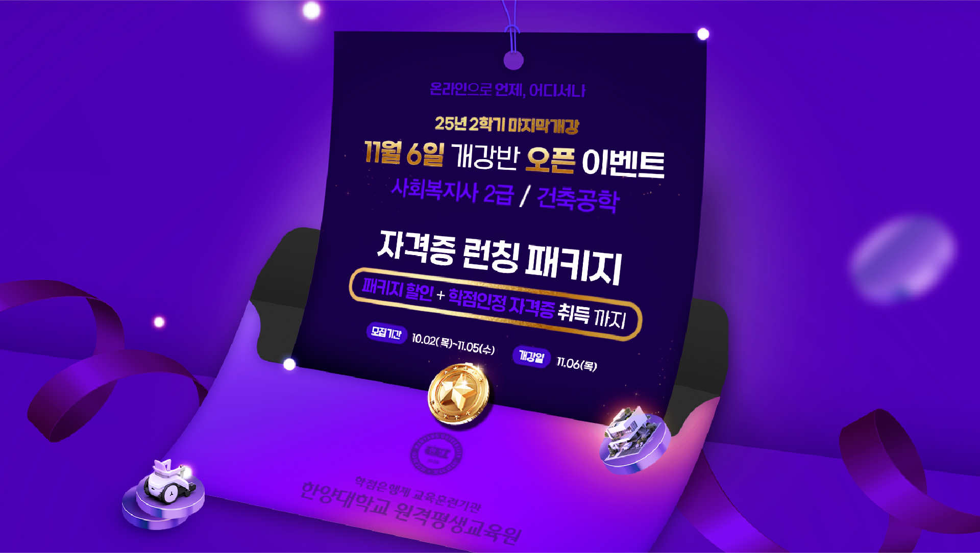 한양대학교 원격평생교육원은 수집한 개인정보를 다음의 목적을 위해 활용합니다.